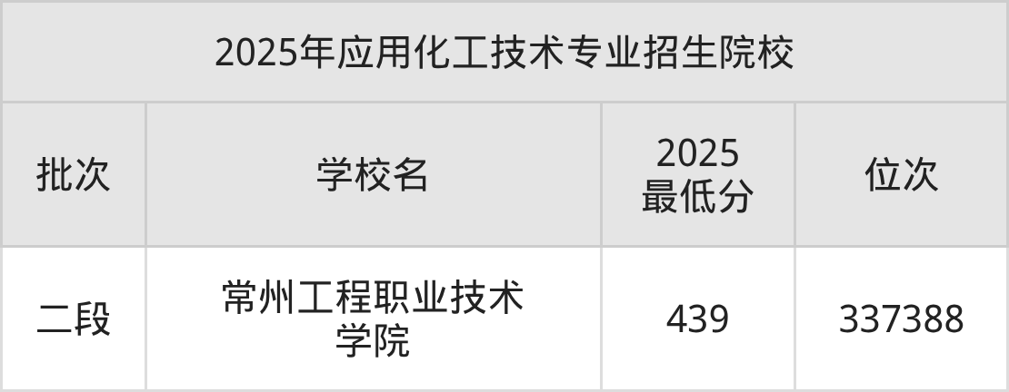 数据显示,应用化工技术最好大学的收分在439分及以上。