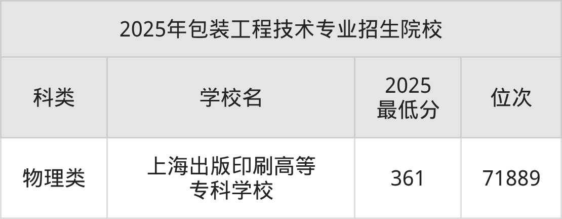 数据显示,包装工程技术最好大学的收分在361分及以上。