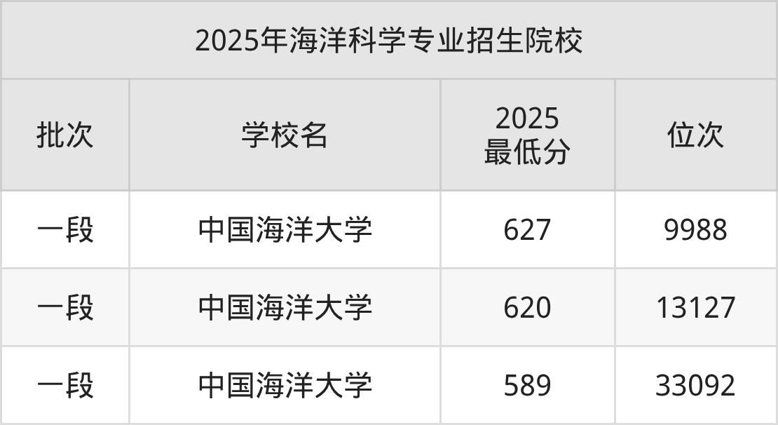 2、海洋科学院校2025分数线