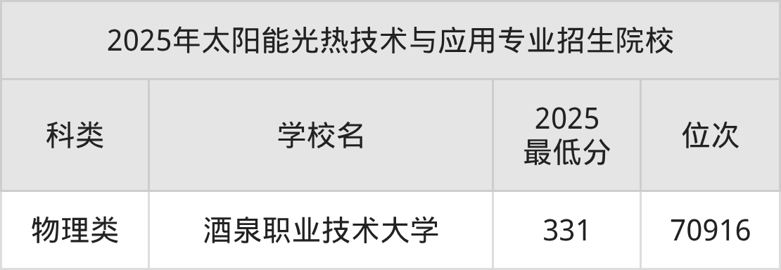 因为各校在不同省市区的收分不一样,为方便对比,这里以吉林省高考为例,列举上述院校2025年在吉林太阳能光热技术与应用招生分数情况。