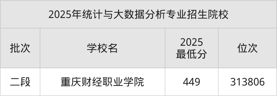 数据显示,统计与大数据分析最好大学的收分在449分及以上。