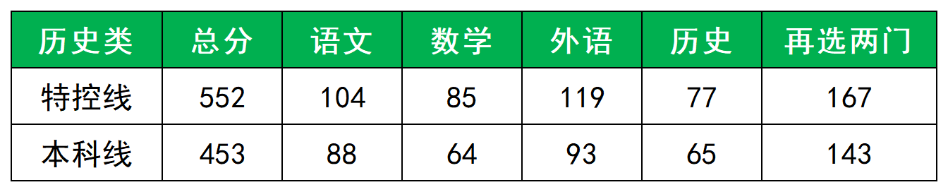 历史类:本科线453分,特控线552分。
