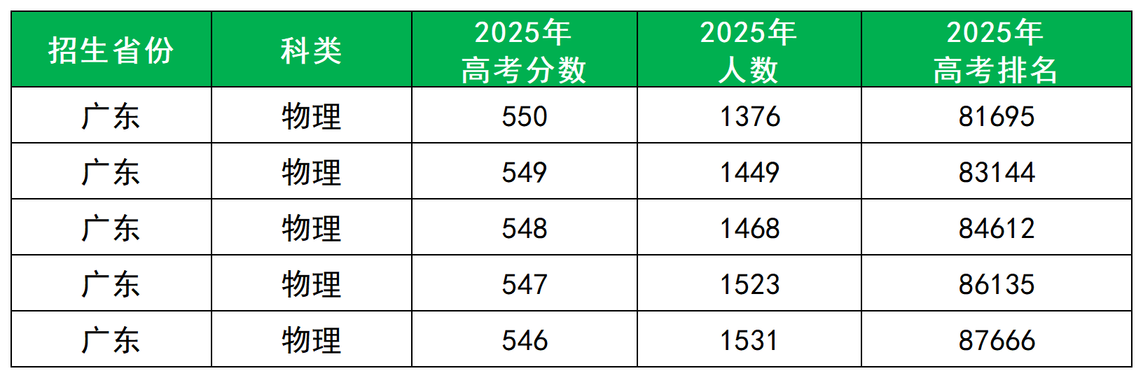 利用等效分查询2025年广东高考一分一段表,548分对应省排名83145~84612名。