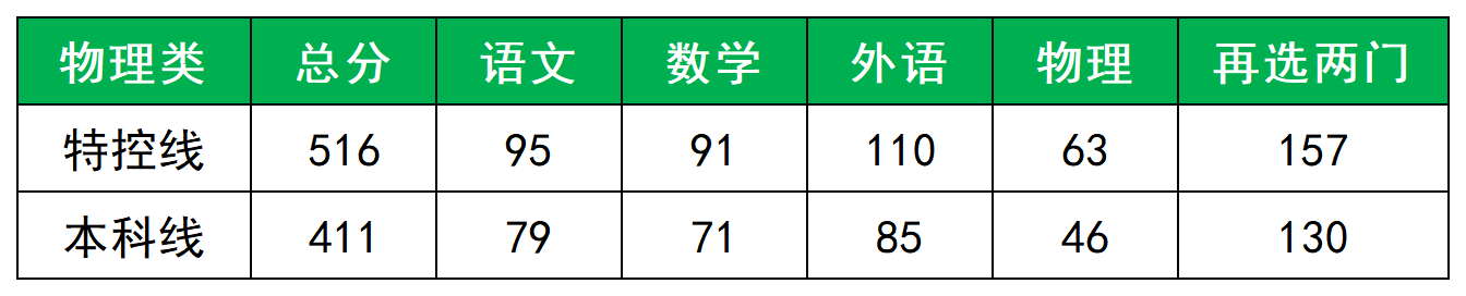 物理类:本科线411分、特控线516分;