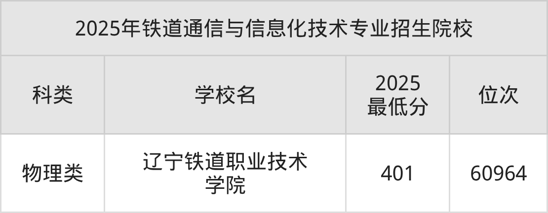 2、铁道通信与信息化技术院校2025分数线