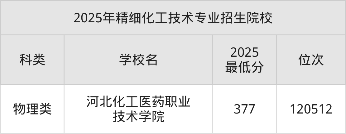 数据显示,精细化工技术最好大学的收分在377分及以上。