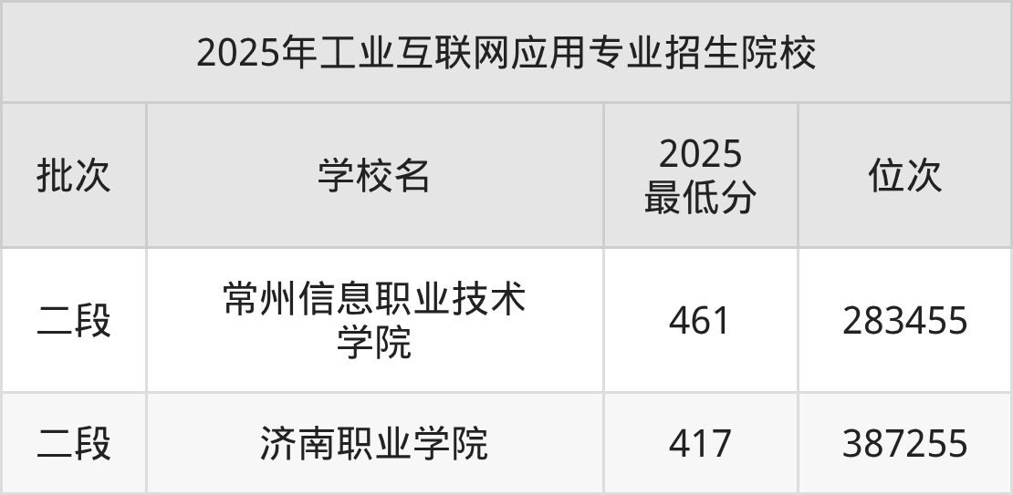 因为各校在不同省市区的收分不一样,为方便对比,这里以山东省高考为例,列举上述院校2025年在山东工业互联网应用招生分数情况。