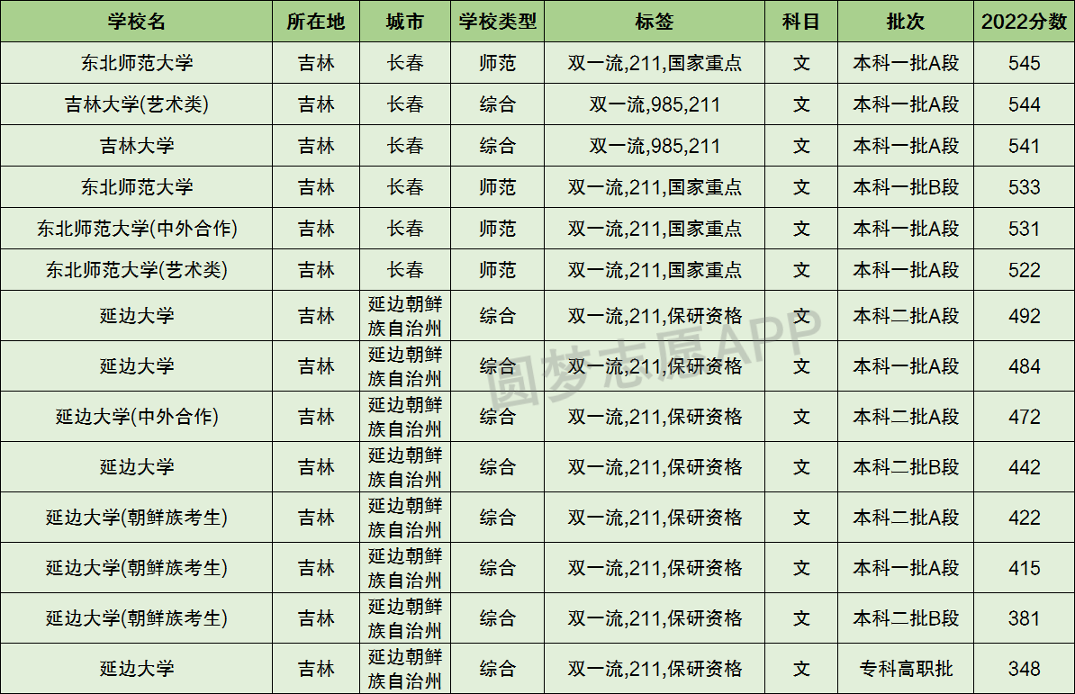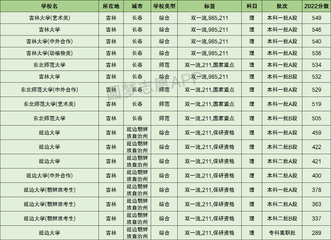 此外下表中还整理了吉林省双一流大学的分数及名单。