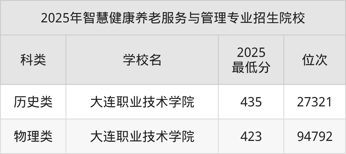 2、智慧健康养老服务与管理院校2025分数线