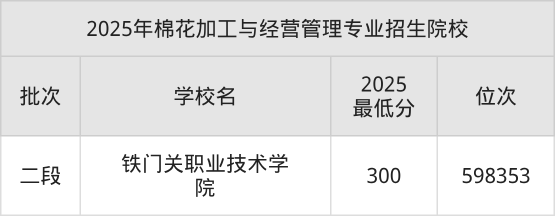 2、棉花加工与经营管理院校2025分数线