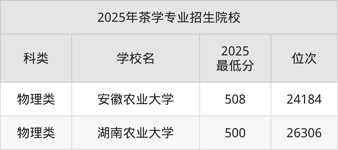 因为各校在不同省市区的收分不一样,为方便对比,这里以吉林省高考为例,列举上述院校2025年在吉林茶学招生分数情况。