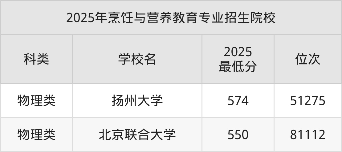 2、烹饪与营养教育院校2025分数线