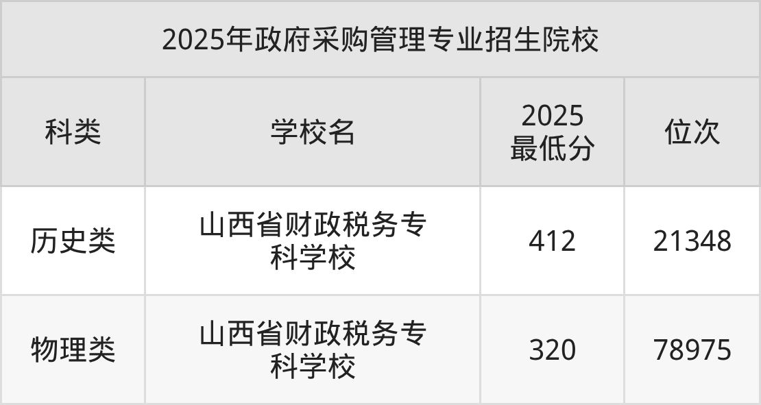 因为各校在不同省市区的收分不一样,为方便对比,这里以内蒙古自治区高考为例,列举上述院校2025年在内蒙古政府采购管理招生分数情况。