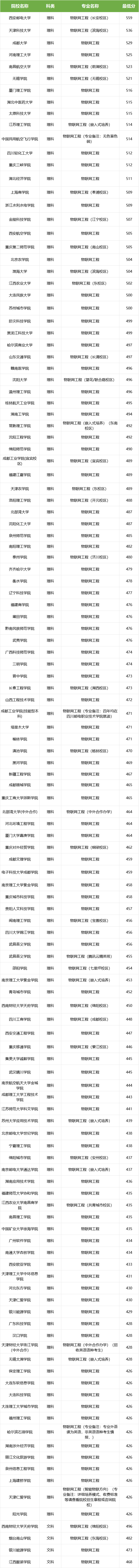 其次是天津科技大学(全国第110名)、成都大学(全国第132名),最低分依次为536分、529分。