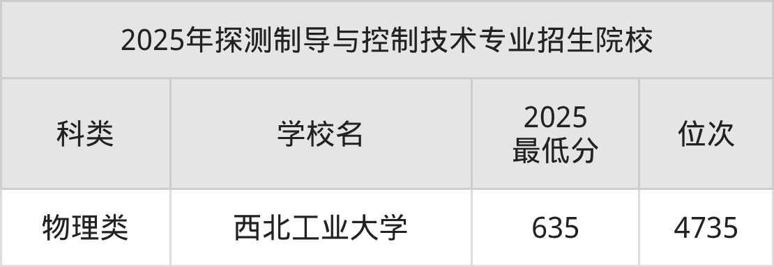 目前国内探测制导与控制技术专业教育发展得比较好的院校有不少,这里以软科2025年探测制导与控制技术专业实力排名为例,列举前5名的院校名单及2025年分数详情。