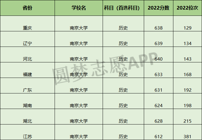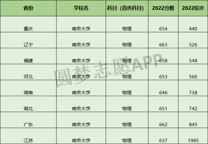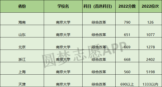 以下为2022年南京大学全国各地录取分数线及位次,以供参考。
