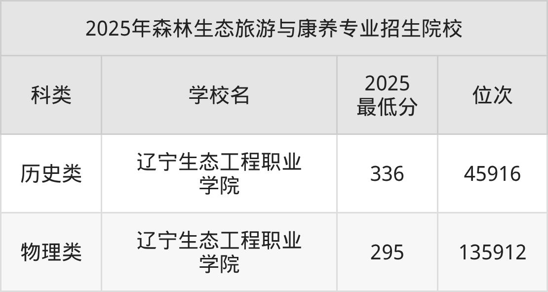 这里以辽宁省高考为例,列举上述院校2025年在辽宁森林生态旅游与康养招生分数情况。