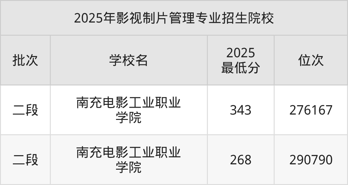 因为各校在不同省市区的收分不一样,为方便对比,这里以浙江省高考为例,列举上述院校2025年在浙江影视制片管理招生分数情况。