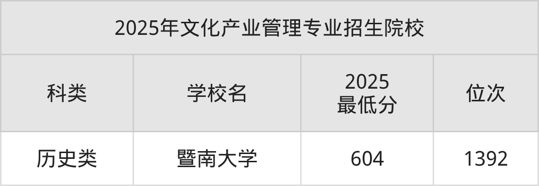 数据显示,文化产业管理最好大学的收分在604分及以上。