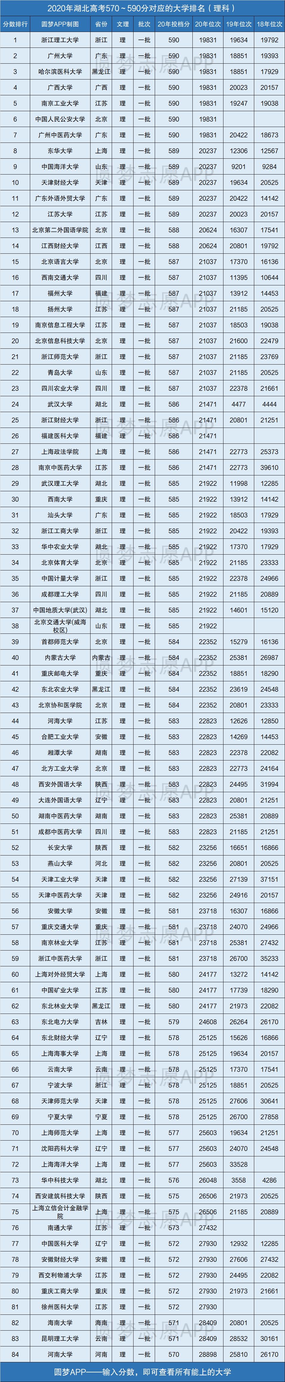 接下来,小编也将为大家奉上2020年在湖北省高考投档分数线在570分~590分之间的大学名单,并且按照投档分数线的高低排序,供2021年湖北580分的理科考生参考。