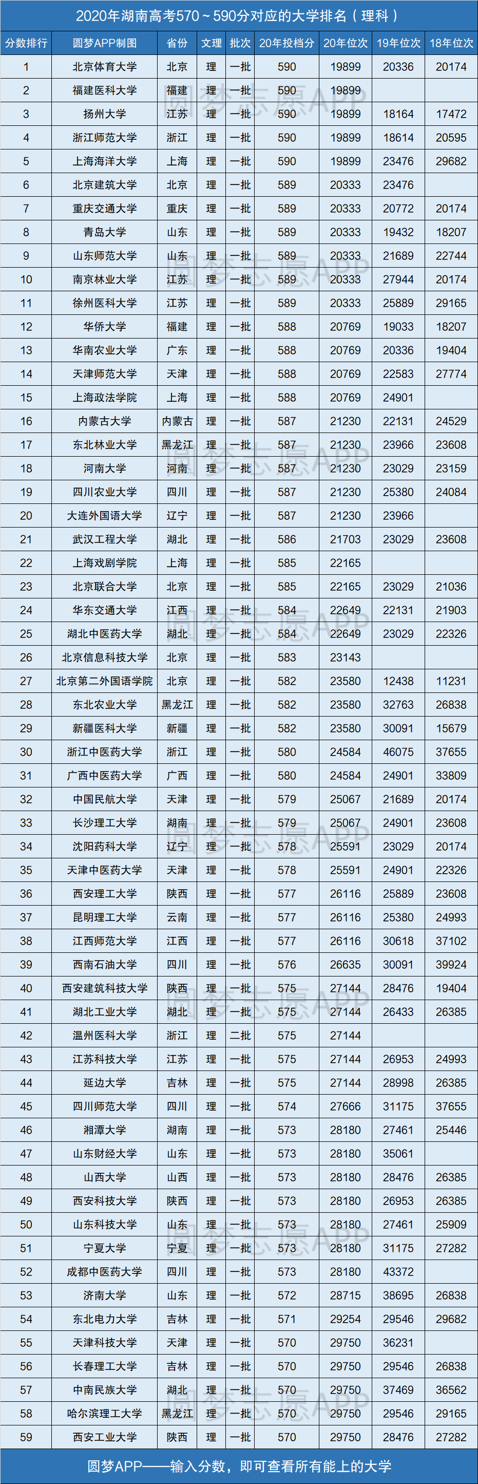 由上图可知,2020年理科580分对应的能上的学校中,包含湖南省的2所大学,它们具体为:湘潭大学、长沙理工大学。高考后不愿出省的同学,也可以重点考虑的这2所学校。