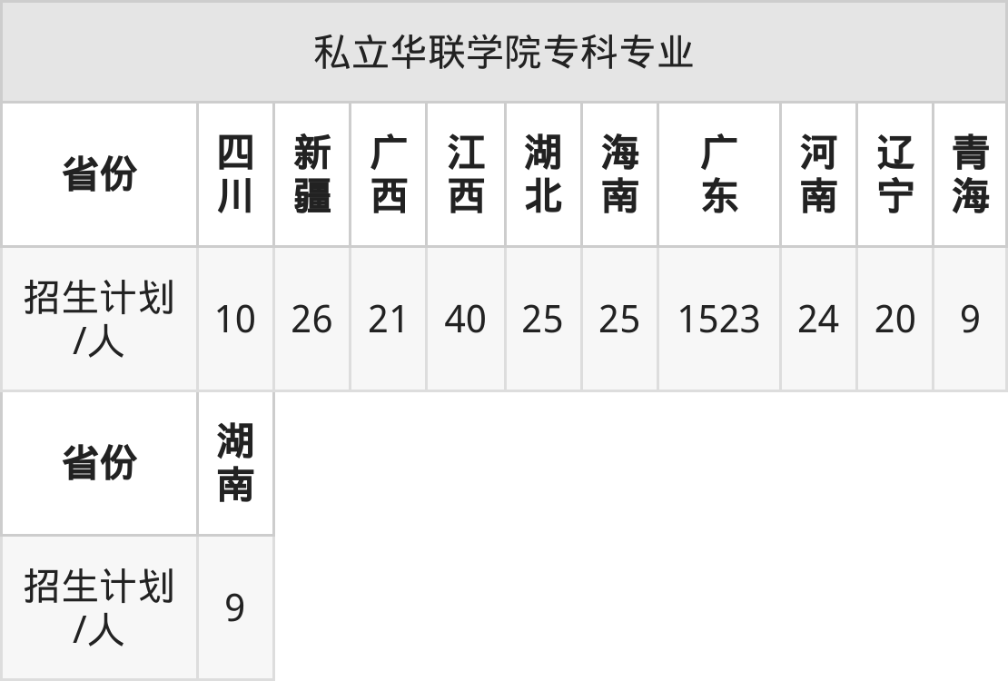 | 私立华联学院专科招生专业 | |