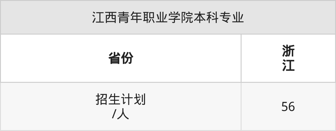 江西青年职业学院面向浙江(56人)开展本科招生。