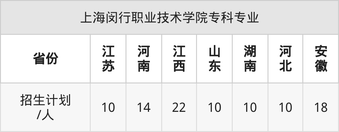 上海闵行职业技术学院面向浙江(32人)开展本科招生。