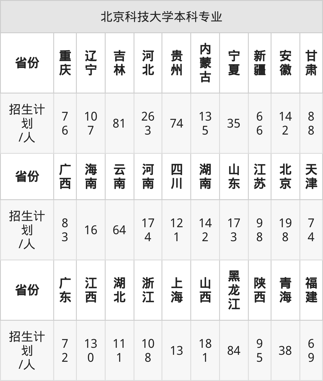 本文将详细介绍北京科技大学最新招生计划、招生省份以及选科要求等信息。