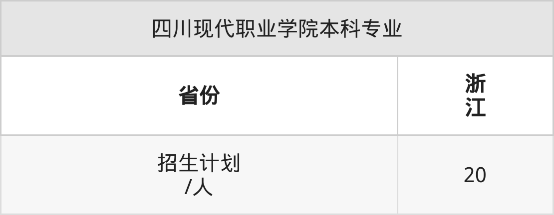 四川现代职业学院面向浙江(20人)开展本科招生。