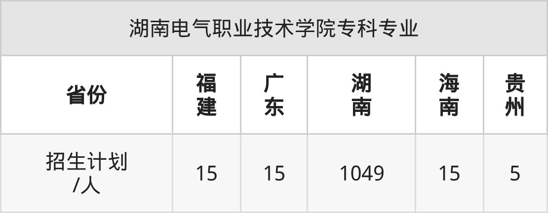 湖南电气职业技术学院面向湖南(1049人)、海南(15人)、贵州(5人)、福建(15人)、广东(15人)开展专科招生。招生批次为专科批。