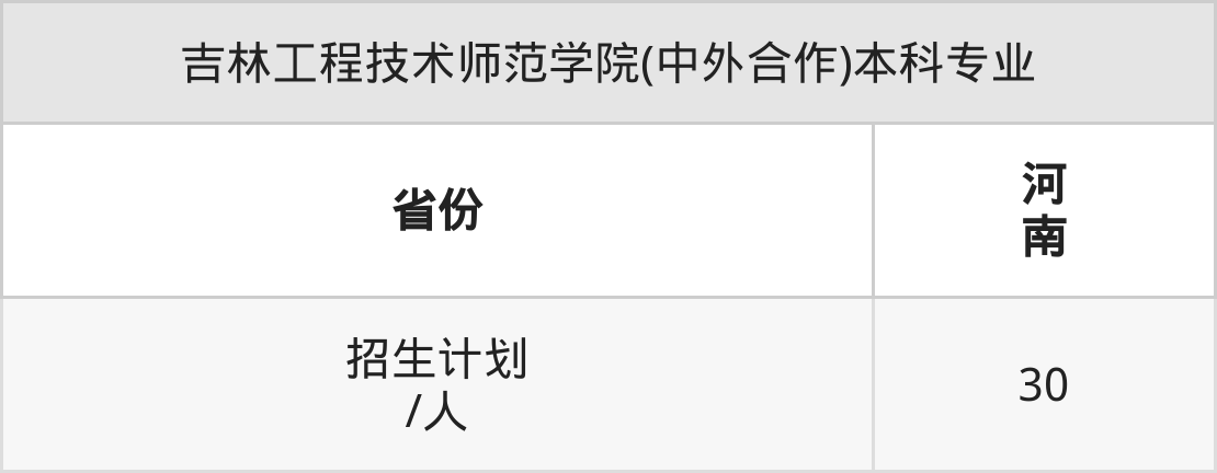 吉林工程技术师范学院(中外合作)面向河南(30人)开展本科招生。招生批次为本科二批。