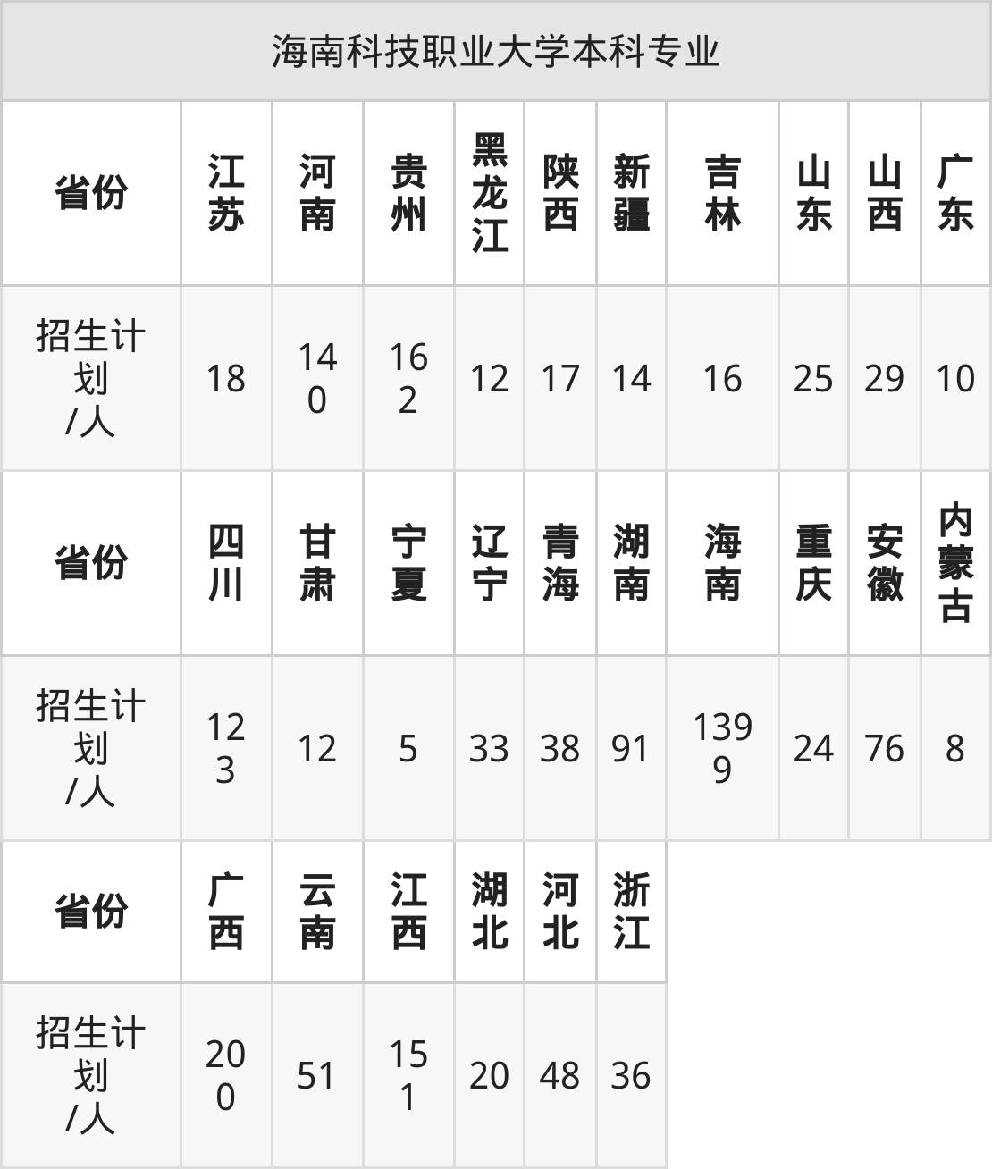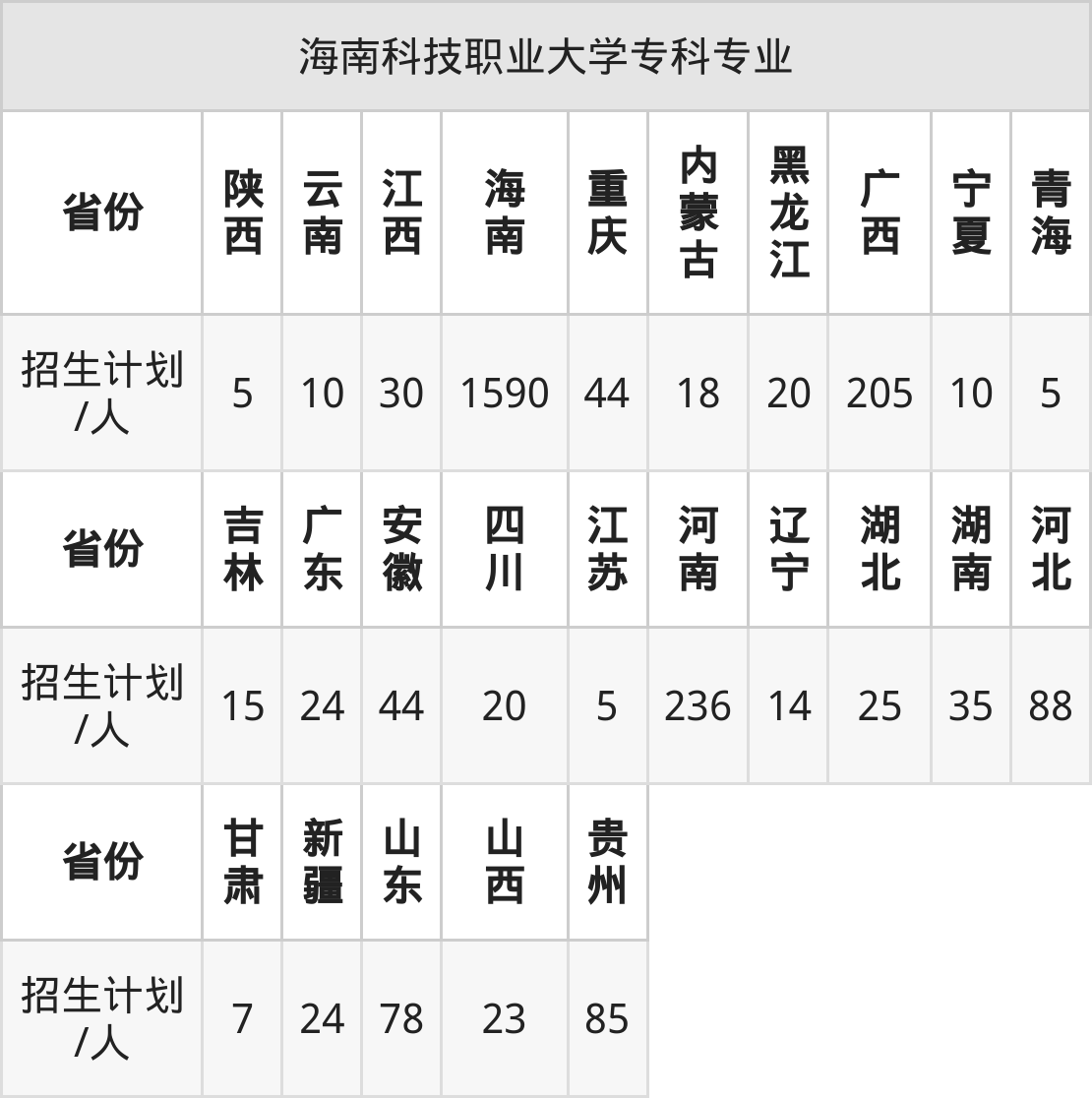 篇幅有限,大家可直接在下表查询本科、专科招生省份及招生计划数: