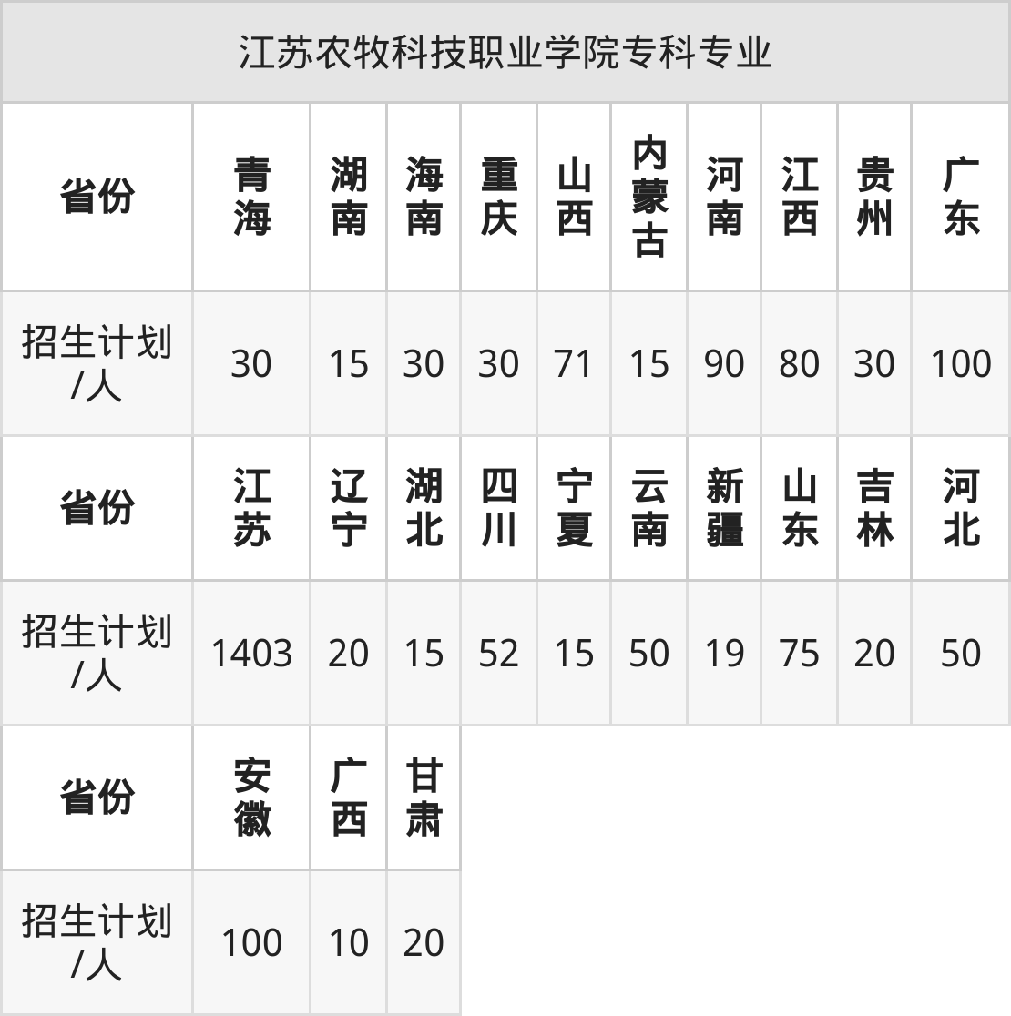 江苏农牧科技职业学院面向浙江(135人)开展本科招生。