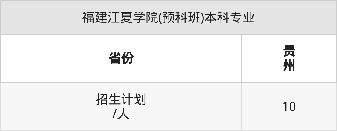福建江夏学院(预科班)面向贵州(10人)开展本科招生。招生批次为本科批。