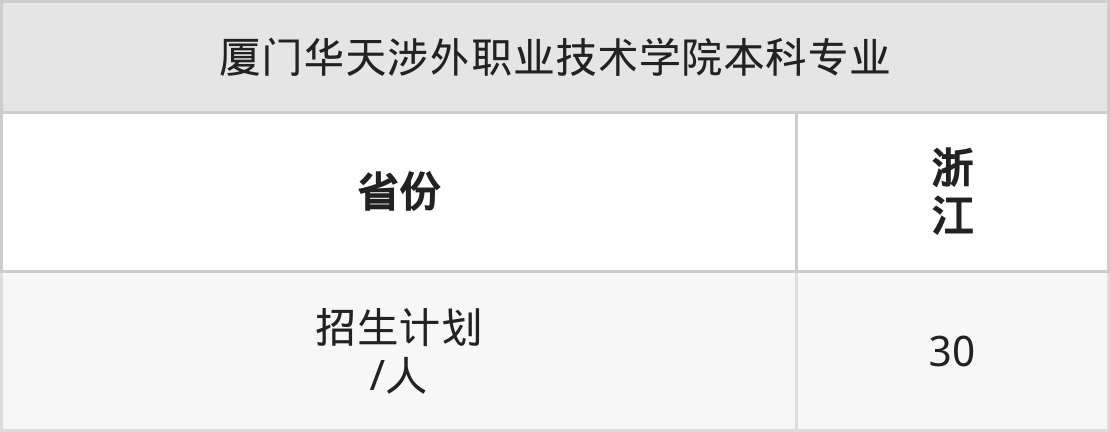 厦门华天涉外职业技术学院面向浙江(30人)开展本科招生。