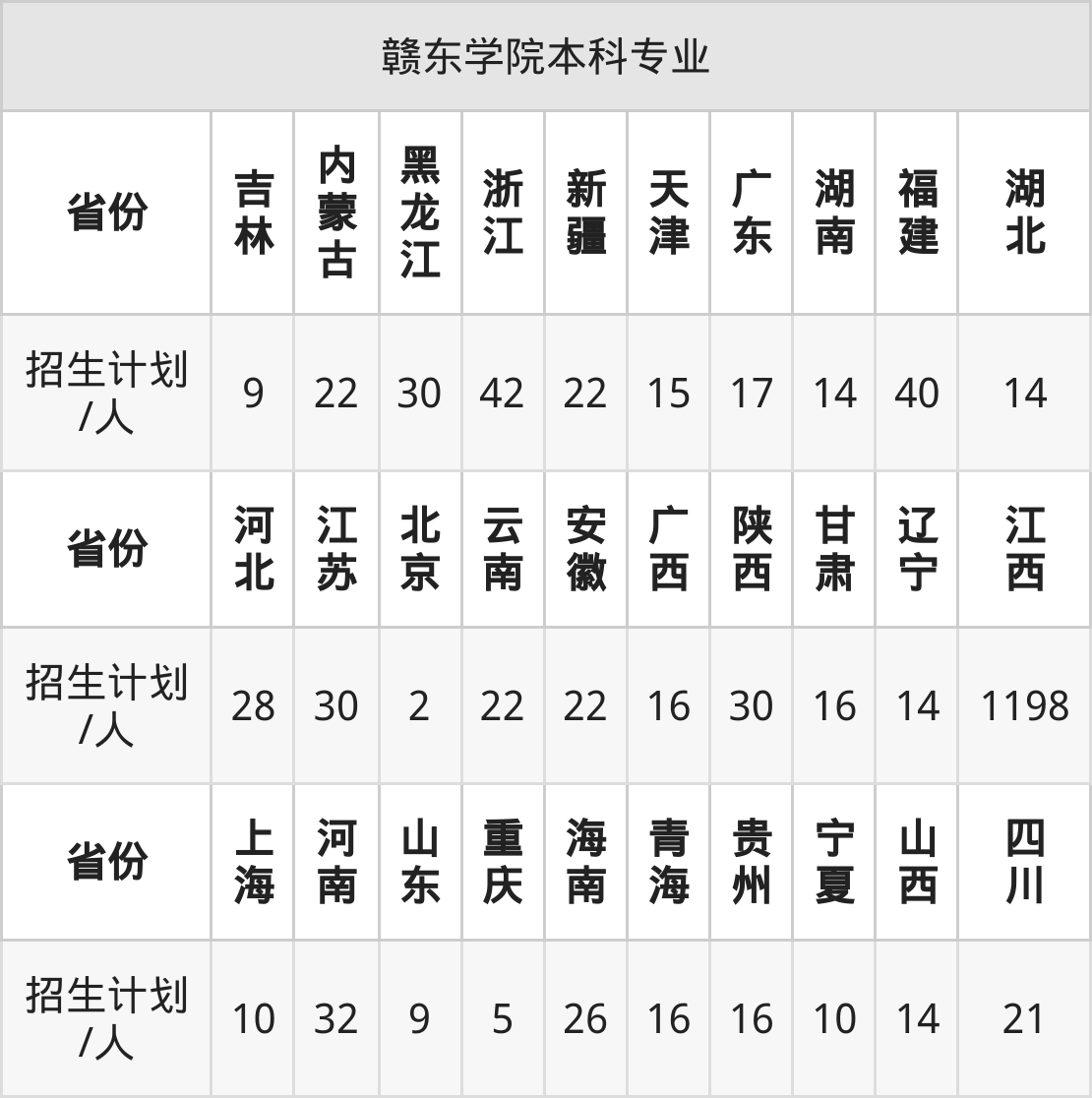 赣东学院面向陕西(30人)、宁夏(10人)、新疆(22人)、辽宁(14人)、青海(16人)、吉林(9人)、河北(28人)等30个地区开展本科招生。其中青海招生批次为本科一段,陕西、四川、内蒙古、新疆、河南招生批次为本科二批,其余省份为本科批。