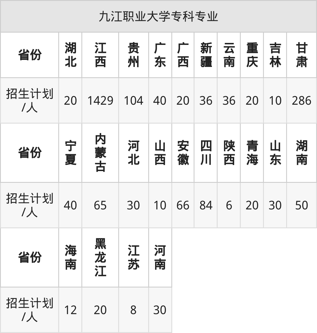 九江职业大学面向浙江(30人)开展本科招生。