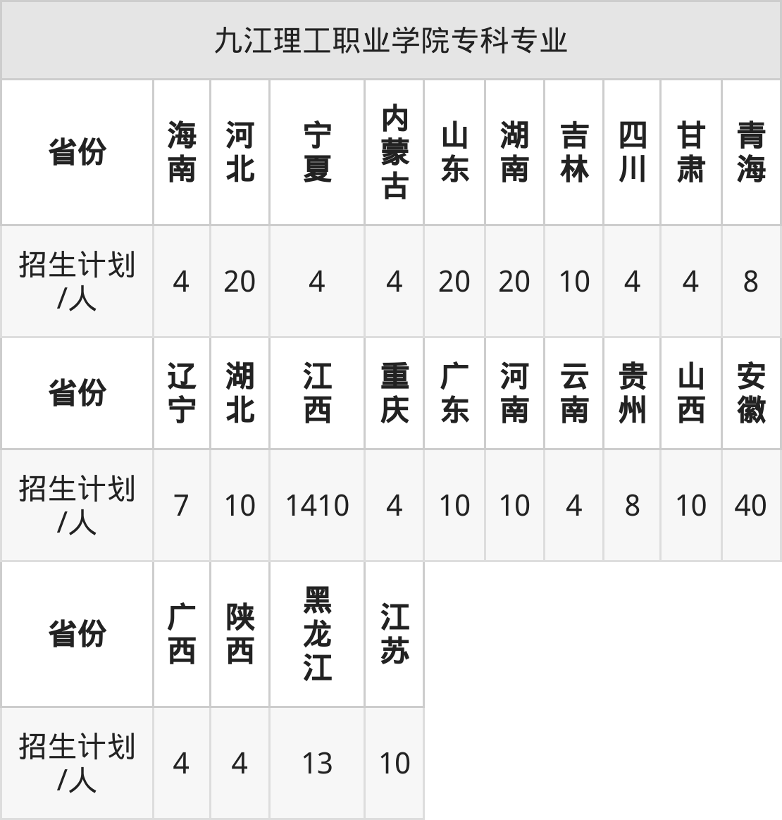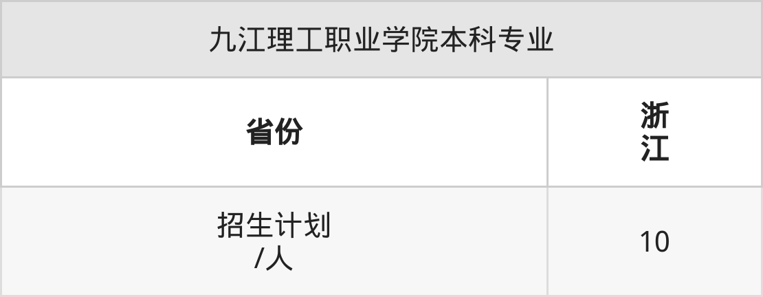 九江理工职业学院面向浙江(10人)开展本科招生。