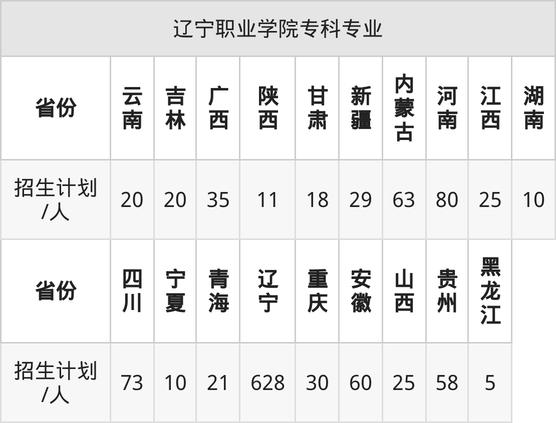 辽宁职业学院面向辽宁(628人)、重庆(30人)、安徽(60人)、宁夏(10人)、陕西(11人)、甘肃(18人)、云南(20人)等19个地区开展专科招生。招生批次为专科批。