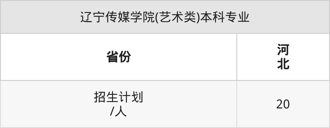 辽宁传媒学院(艺术类)面向河北(20人)开展本科招生。招生批次为本科批。