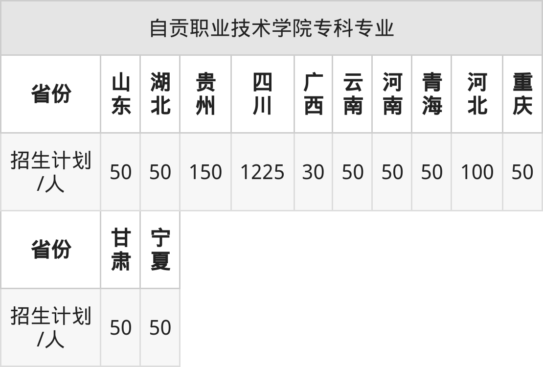 自贡职业技术学院面向浙江(50人)开展本科招生。