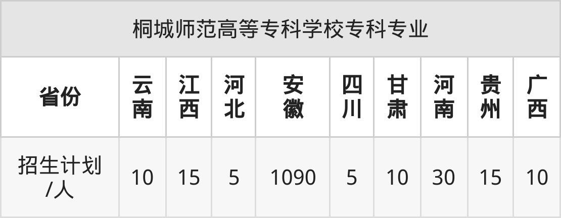 桐城师范高等专科学校面向河南(30人)、云南(10人)、江西(15人)、河北(5人)、安徽(1090人)、广西(10人)、甘肃(10人)等9个地区开展专科招生。招生批次为专科批。