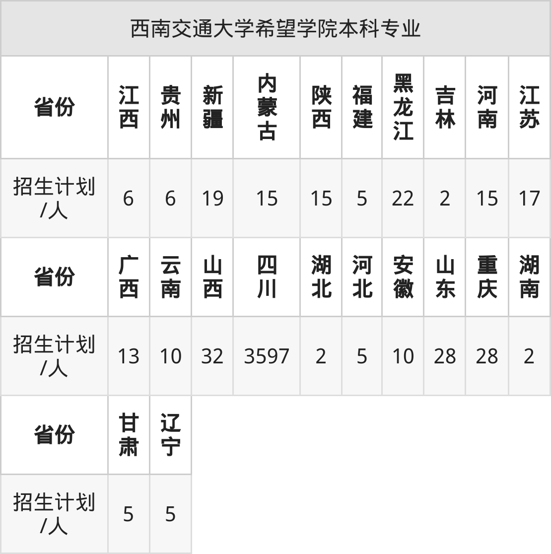 本文将详细介绍西南交通大学希望学院最新招生计划、招生省份以及选科要求等信息。