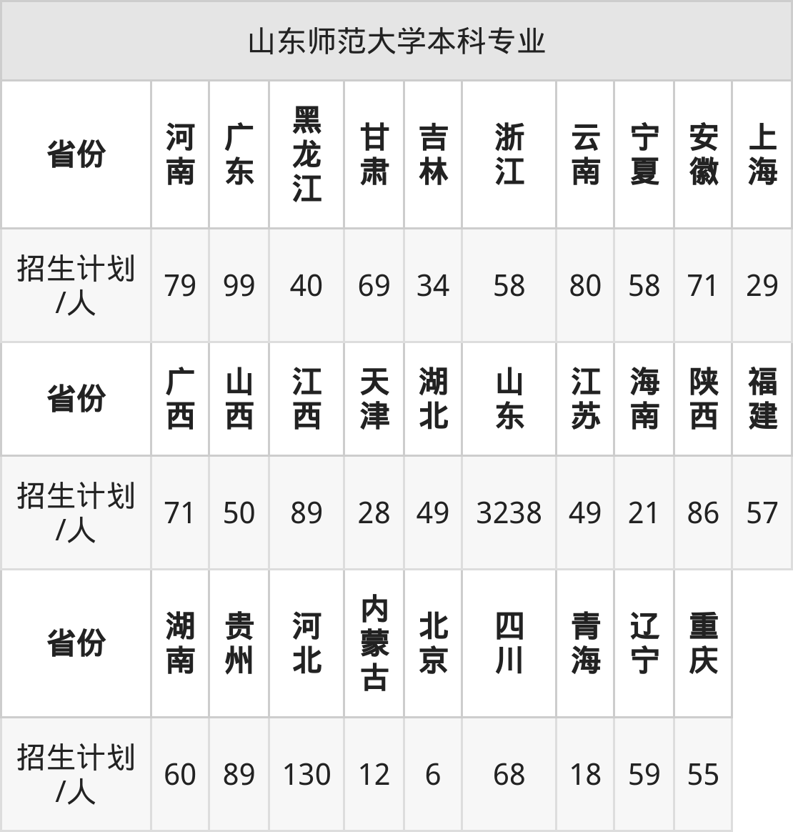 篇幅有限,大家可直接在下表查询本科招生省份及招生计划数: