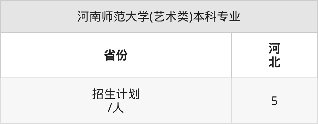 河南师范大学(艺术类)面向河北(5人)开展本科招生。招生批次为本科批。
