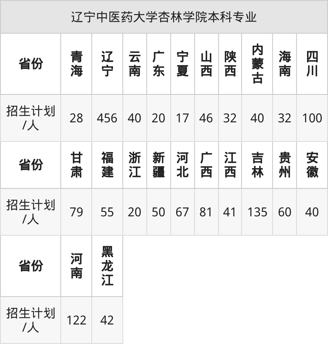 辽宁中医药大学杏林学院面向安徽(40人)、黑龙江(42人)、云南(40人)、辽宁(456人)、浙江(20人)、海南(32人)、山西(46人)等22个地区开展本科招生。其中云南招生批次为二本,陕西、河南、内蒙古、四川、新疆招生批次为本科二批,其余省份为本科批。