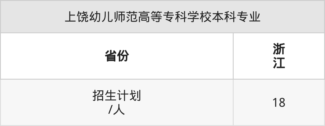 上饶幼儿师范高等专科学校面向浙江(18人)开展本科招生。