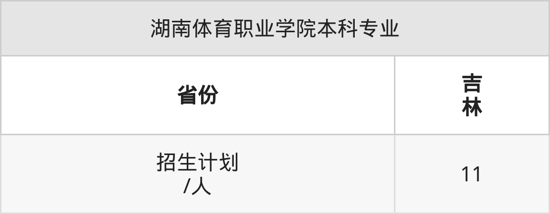 湖南体育职业学院面向吉林(11人)开展本科招生。招生批次为本科提前批A。
