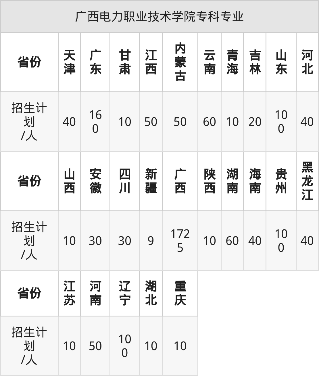 广西电力职业技术学院面向浙江(100人)开展本科招生。